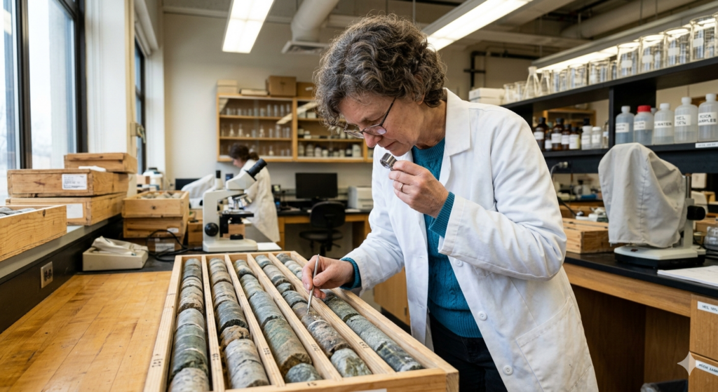 Much like our drug development example, exploration has a high-failure, high-reward path. Early-stage “lab work” (geochemistry/geophysics) leads to “clinical trials” (core drilling) and eventually “commercialization” (feasibility and production).